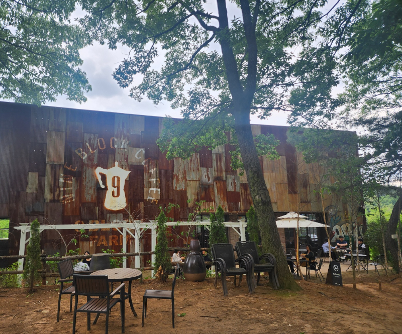 ‘나인블럭 고양점’은 야외 숲을 그대로 옮겨놓은 듯한 정원이 가장 큰 특징입니다. 카페 입구부터 이어지는 푸른 나무들과 커다란 빨간 벽돌 건물이 마치 근교로 여행을 온 듯한 기분을 느끼게 해 줘요. 특히 날씨가 좋은 봄, 가을에는 야외 테라스 좌석에서 햇살을 받으며 커피를 즐기기에 최적의 장소랍니다.