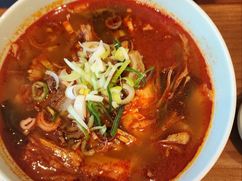 엄마가 주문하신 얼큰 곰탕은 조금 맵다고 하시는데 싹싹 잘 드셨어요. 함께 시킨 녹두전도 아주 맛있었는데, 겉은 바삭, 속은 촉촉하고 기름지지 않아 냉면과 잘 어울렸어요.