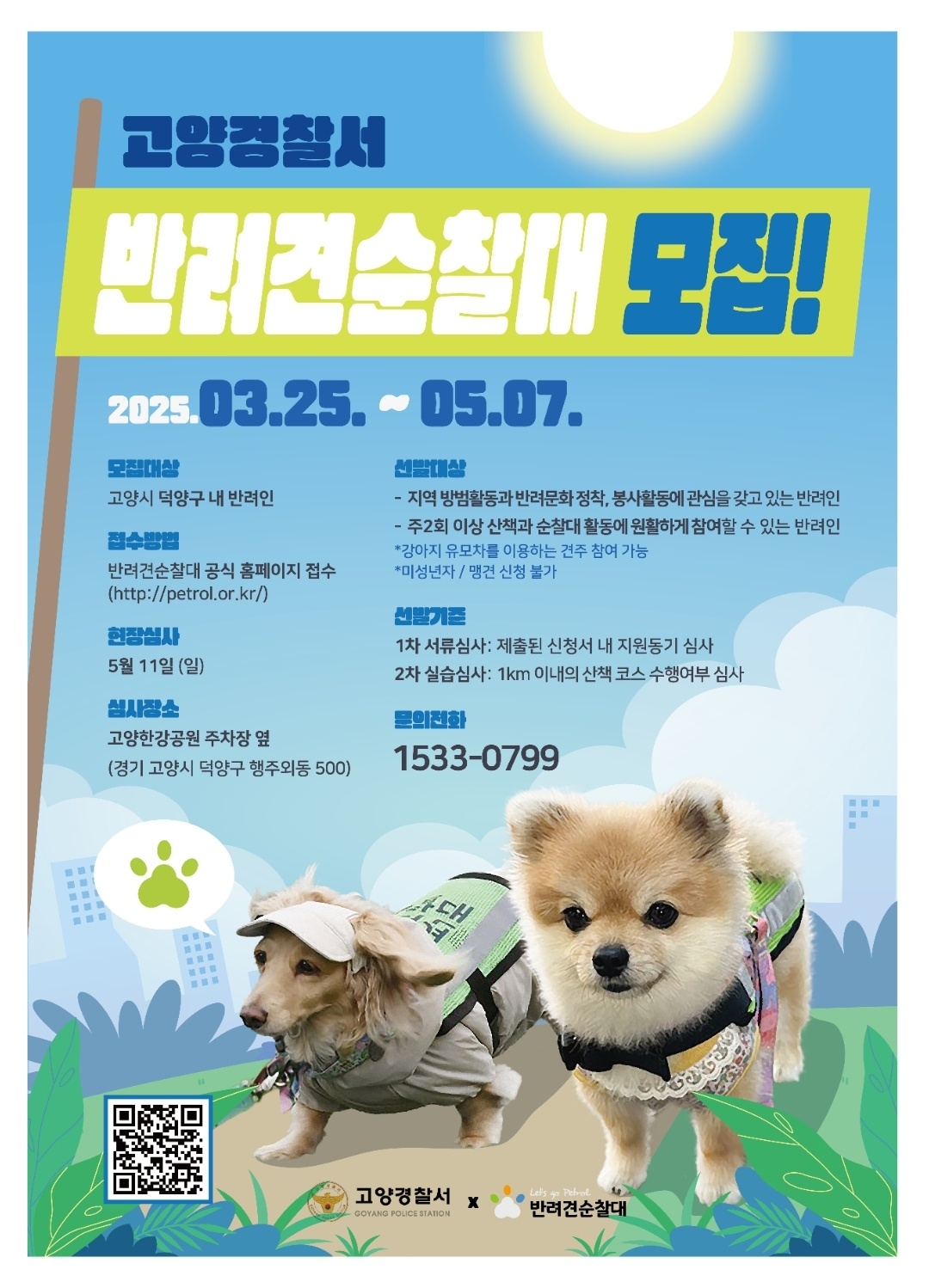 제가 살고있는 고양시도 현재 2025년 3월 25일부터 5월 7일까지 반려견 순찰대를 모집 중이에요.